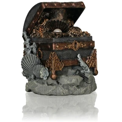 AQUARIUM TREASURE: The OASE biOrb treasure chest (14.6 cm x 14.2 cm x 17.2 cm) is a detailed treasure chest with wooden, stone and gold elements for setting up the aquarium, e.g. with a pirate theme. BIORB AQUARIUM: The aquarium accessories have been specially adapted to biOrb tanks and are suitable for the models CUBE (from 30 l), TUBE, LIFE (from 30 l), FLOW, CLASSIC (from 30 l) and HALO (from 30 l). INSTALLATION AND MAINTENANCE: The pirate treasure can be easily positioned as decoration and removed for cleaning - dirt such as algae or silt can be easily removed from the chest DETAILS: This decorative piece, lovingly designed by artist Samuel Baker, impresses with its many subtleties, such as small corals, the grey rock, shells with pearl or the metal ornaments. BIORB AQUARIUM DECORATION: The OASE biOrb aquarium decoration sets offer limitless creativity and a wide range of possibilities for fascinating underwater worlds with a unique style