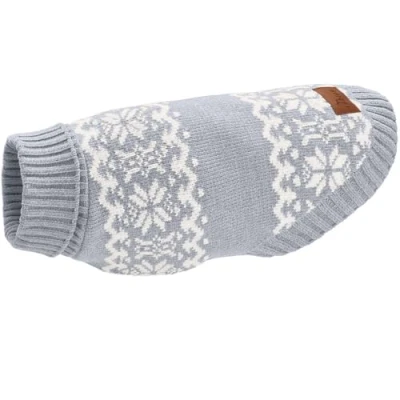 Cuddly warm on cold days: soft knitted jumper made from supple chenille yarn - ideal for cold-sensitive dogs who should be warm and secure even in winter. Fashionable Norwegian design: stylish eye-catcher with classic Norwegian pattern - combines functionality with fashionable standards for trend-conscious dog owners: inside. PROTECTIVE ROLL COLLAR: High, individually fold-over collar warms the sensitive neck area - for extra protection on windy days. Comfortable fit: closed belly side and elastic material provide optimal fit and freedom of movement – also suitable for longer walks. Size 25 cm: adjustable neck: 24 – 30 cm | belly adjustment: 33 - 41 cm | back length: 25 cm