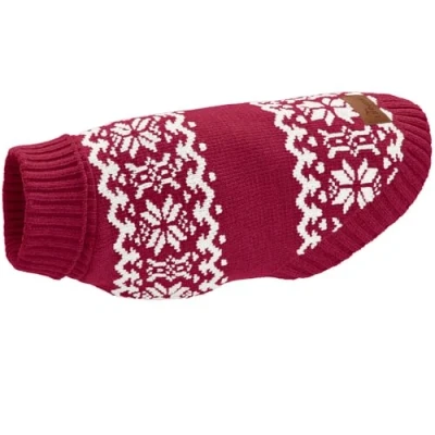 Cuddly warm on cold days: soft knitted jumper made from supple chenille yarn - ideal for cold-sensitive dogs who should be warm and secure even in winter. Fashionable Norwegian design: stylish eye-catcher with classic Norwegian pattern - combines functionality with fashionable standards for trend-conscious dog owners: inside. PROTECTIVE ROLL COLLAR: High, individually fold-over collar warms the sensitive neck area - for extra protection on windy days. Comfortable fit: closed belly side and elastic material provide optimal fit and freedom of movement – also suitable for longer walks. Size 55 cm: adjustable neck: 35 - 42 cm, belly adjustment: 56 - 64 cm, back length: 55 cm