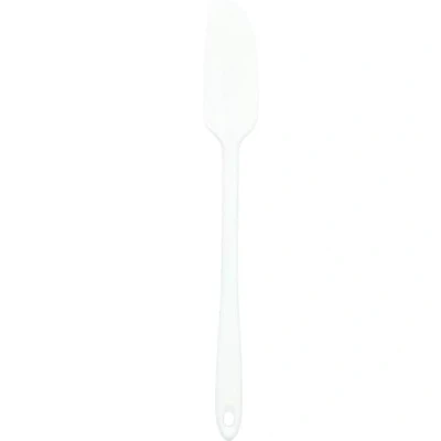 AmazonPractical dough scraper, narrow: The 27.5 cm long and 3.5 cm wide dough scraper in the timeless colour Milky White is ideal for precise work when stirring, scraping and spreading. Wide Application:Perfect for scraping out jars, bowls or small bakeware - the narrow scraper is ideal for fine work in the kitchen. PREMIUM MATERIAL - Made of food grade silicone with sturdy metal core, BPA free and heat resistant up to 450℉ - great for everyday use. THOUGHTFUL DESIGN The narrow scraper reaches even hard to reach places, while the euro hole allows for easy storage - perfect for any kitchen. Box contents: 1 x narrow dough scraper, Milky White, 27.5 cm x 3.5 cm, made of silicone with metal core and Euro holes by Birkmann.