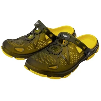 AmazonRobust and comfortable shoe for the water and at home. The Cat Clog has a sporty look, a very comfortable fit, is easy to clean and dries quickly. The ventilation openings distributed around the shoe ensure better breathability and safe wearing comfort on the bank and even in the water. The outer material is light as a feather and provides secure protection for the feet when fishing. The heel strap can be folded back to any position to provide secure support or forward so that the angler can quickly slip from the bedchair into the shoes when a fish bites. Color: Black Yellow Material: EVA/Polychlorid Package Dimensions: 12.2 L x 32.6 H x 17.3 W (centimeters)
