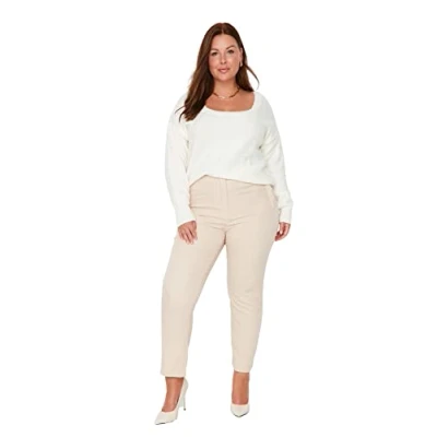 Material Composition: 87% Polyester,13% Elastane Occasion: The Beige Cigarette pants Plus Size Pants is perfect for Business occasions. Our Plus Size Collection offers all the must-haves and latest trends in sizes up to 6XL. Curves are cool – from casual office outfits to comfy sweats and glamorous evening looks for your date night. Design: This High Waist Woven Plus Size Trousers for Woman has Cigarette pants fit and Straight leg with a Plain pattern. Size Conversion: XXS(EU 32 - US 0), XS(EU 34 - US 2), S(EU 36 - US 4), M(EU 38 - US 6), L(EU 40 - US 8), XL(EU 42 - US 10), 2XL(EU 44 - US 12), 3XL(EU 46 - US 14), 4XL(EU 48 - US 16), 5XL(EU 50 - US 18), 6XL(EU 52 - US 20) Wash at a maximum temperature of 30°C. Do not use bleach. Do not tumble dry. Iron at low temperature. Do not dry clean.