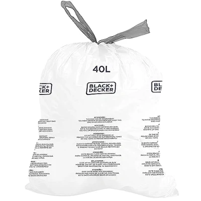 BLACK + DECKER BXBB00040E Drawstring, 20 Pack, White, 40L Bin Liner