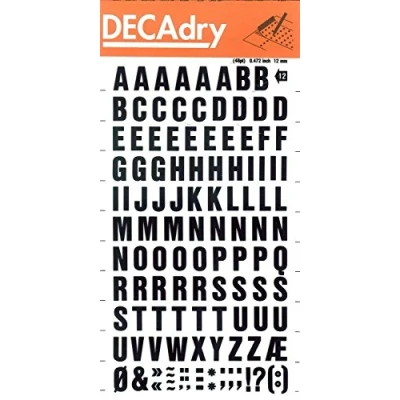 Black Letters and Numbers Transferable 12 mm