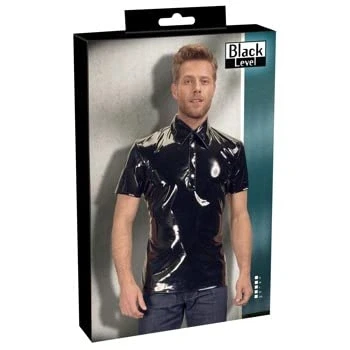 Made out of 4-way stretchy vinyl Tight-fitting polo style With a collar and press studs
