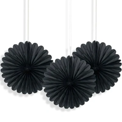 Black Solid Tissue Paper Fans (15cm) 3 Pieces Vibrant Hanging Decorations for Parties & Events