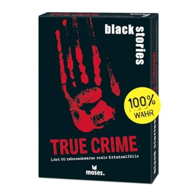 The original in a new look - Black Stories by Moses. The editors are 50 black raven puzzles to solve, together as a team or in the new professional variant of riddles against each other WARNING: The morbid puzzle stories are suitable for ages 12 and up and offer lots of fun and excitement for both two and large groups, at every party and game night Quick start of the game: simple game principle, whether cooperative or competitive – with simply explained rules, the puzzle can start immediately: with simple yes/no, questions and guessing gradually get closer to the ends of the solution game Practical format: the puzzle game for teenagers and adults is always at hand in the practical box measuring 9.5 x 13.2 x 2.3 cm and is therefore perfect for holidays, long trips or as a party game Creative and entertaining. Unusual events, absurd misadventures, macabre murders and scary crimes: this is the iconic black raven puzzle game in the True Crime edition - 100% true!, Manufacturer: moses. Verlag GmbH