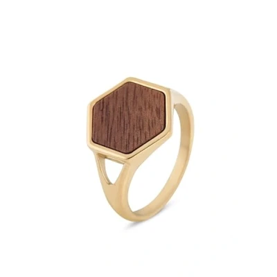 Blackskies Lignum WOOD Ring, Men's, Size: 57, Gold coloured
