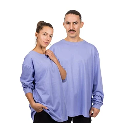 Blackskies Men's Oversized Basic Longsleeve T Shirt Sweater, Lavender, S