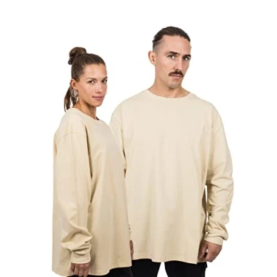 Blackskies Men's Oversized Basic Longsleeve T Shirt Sweater, Sand, S
