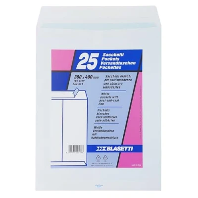BLASETTI 25 Buste A SACCO Bianco 300X400MM 100GR C/Strip S