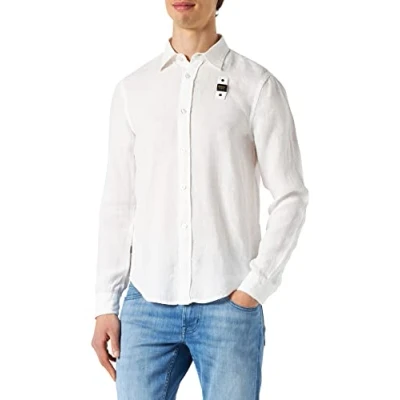 Blauer Men's Camicia Manica Lunga Blouse, 100 Bianco Ottico, 14