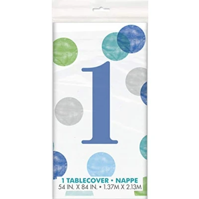 ADORABLE BLUE DOTS DESIGN: Our blue dots 1st birthday table cover showcases a delightful pattern of blue dots, adding a vibrant and charming touch to your little one's first birthday celebrations. QUALITY PLASTIC MATERIAL: Crafted from durable and waterproof plastic, this rectangular tablecloth (137cm x 213cm) protects your table against spills and messes while maintaining its original elegance. PERFECT FOR LITTLE'S CELEBRATIONS: Designed to capture the essence of joy and wonder during your little one's milestone moments - ideal for birthday parties, baby showers, or other special occasions. REUSABLE & EASY TO CLEAN: Save both time and money with our reusable table cover - simply wipe it down with a damp cloth after the party and store it for your next event. BOOST YOUR PARTY DECOR: This charming blue dots table cover not only serves its practical purpose, but also acts as a stylish addition to your event's theme and decor - a must-have item for creating unforgettable memories., Manufacturer: Unique