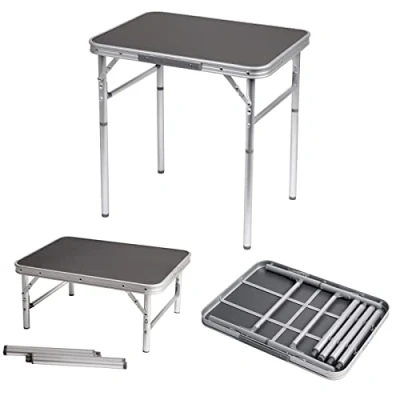 Aluminium table. Extra fine adjustment using the levelling screws. Stores compact due to the removable legs, a hand grip and dividable top.