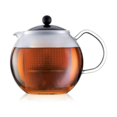 TEA PRESS: Brew a delicious cup of tea in this glass tea press that utilises the same brewing system as the French press, perfect for loose teas and tea bags INFUSER: Tea filter is made with an elastic silicone rim and ensures leaves and kernels remain within the strainer while brewing MAXIMUM FLAVOUR: Brew tea to your liking without needing to remove the infuser, simply press down on plunger once preferred coloring and strength is reached for a perfect cup of tea in minutes GLASS TEAPOT: Sleek design is made with a borosilicate glass body.