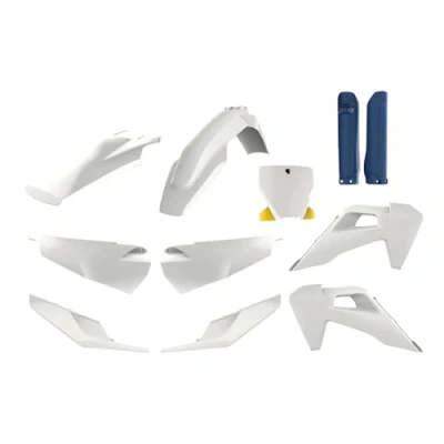 BODYKIT TC/FC 19-22 OE22 Quality: our kits comply with the standards imposed by regulatory authorities. All parts are inspected in our own quality control centre. Perfect fit and tested, no additional drilling required. IMAGE: More cost-effective alternatives to OEM parts. Enjoy the same quality and technology as the original parts with colour matching and bright, flexible trims. Composition: The kit consists of the following parts, which can also be purchased separately. Front mudguards, rear mudguards, side cover, cooler cover, race number plate and fork guard. Model: Husqvarna TC/FC 19'-23' OEM colour