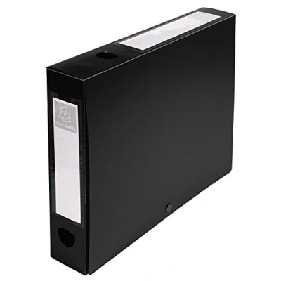 Features: collection box for notebooks, documents and much more, made of plastic, with press stud closure Spine width: 60 mm Format: for DIN A4 Delivered flat, FSC certified Colour: black, pack of 10