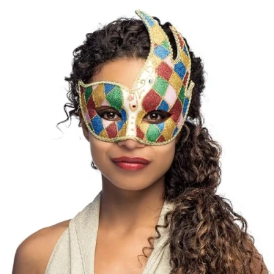 VENETIAN MASQUERADE MASK – Elegant glitter mask with vibrant harlequin-style colours and gold detailing, designed to stand out at any carnival, ball, or themed party SPARKLING DESIGN – Decorated with multi-coloured glitter and gemstone accents for a glamorous and eye-catching look that shines under party lights COMFORTABLE TO WEAR – Fitted with a satin ribbon tie, allowing the mask to stay securely in place while remaining comfortable for extended use PERFECT FOR COSTUME EVENTS – Ideal accessory for masquerade balls, Venetian carnivals, Halloween, fancy dress parties, theatre performances, and themed celebrations UNIVERSAL FIT – Measuring 16 cm x 21 cm, this mask is lightweight, stylish, and suitable for both men and women, making it a versatile costume accessory, Manufacturer: Boland
