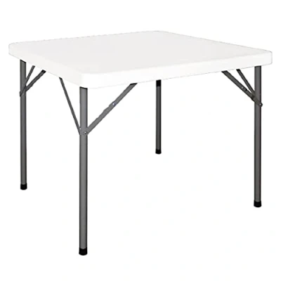 Legs fold for easy storage and transport. Table is weatherproof, making it suitable for both indoor and outdoor use. Comes fully assembled, can be easily removed from the box and used. High density polyethylene top that is resistant to most weather conditions. The steel frame provides excellent stability while being resistant to accidental damage.