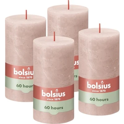 Bolsius Rustic Pillar Candle, Pink Misty, 13 x 7 cm (Pack 4)