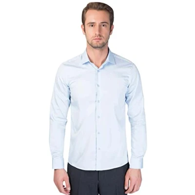 Bonamaison Men's Comfort Fit Langarmshirt Button Down Shirt, Sky Blue, L
