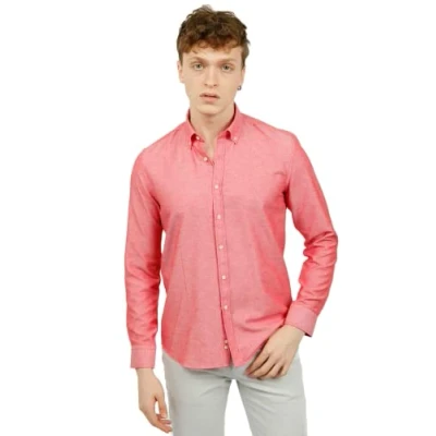Bonamaison Men's Slim Fit Langarmhemd Button Down Shirt, Red, S