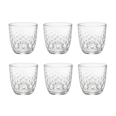 Bormioli Rocco GLIT GLIT GLITS SET OF 6 ON A TRAY Diamond design with drops and a gradient of colour that distributes the weight of the glass for a pleasant feel. 6 pieces on a tray, choose from 2 sizes: 285ml glass (water glass) or 375ml tall glass (long drink) The heavy base makes it a convenient water tumbler and tumbler for everyday use and entertainment. SATISFIED GUARANTEED - If you have any problems, please contact us ASAP and we will refund or send you a replacement glass., Weight: 3.06 Pounds, Manufacturer: Bormioli Rocco