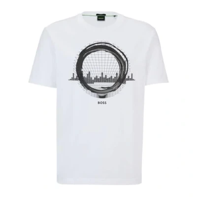 Straight cut Boss T-shirt Made of elastic cotton With techno artwork and logo on the chest