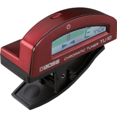 CLIP-ON TUNER WITH “TRUE COLOR” DISPLAY The BOSS “TU” line is synonymous with reliable, roadworthy and accurate tuning. The TU-10 offers a stylish design and robust body with high-performance features derived from other BOSS tuners, such as Accu-Pitch, flat tuning up to five semitones, and Stream mode A unique feature — the “true color” LCD — provides a full, multi-color visual experience not seen before in other clip-on tuners. In addition, the reflection-display function dramatically improves visibility Stylish design and robust body Available in a variety of colours