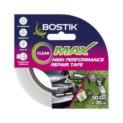 Bostik Max Repair Tape Clear Ultra Strong Waterproof Duct Maximum Bond Strength Heat, Water & UV Resistant Indoor Outdoor Use 50mm x 20m Roll
