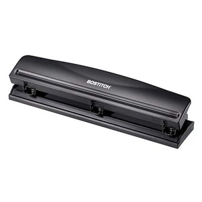 Bostitch 3 Hole Punch, 12 Sheets, Black (KT HP12 BLK)