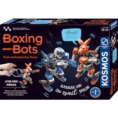 Set up in the ring and go! Two robots in one set in the duel for the title of hydraulic champion. With a practical click plug-in system, the Robert can be easily set up and configured - without screws or batteries! Fist, block or a spectacular evasive manoeuvre? No problem, with the hydraulic control via joysticks The elaborately illustrated and easy-to-follow instructions also provide exciting background knowledge on hydraulics and pneumatics. The Kosmos experiment box boxing bots for children between ten and 14 years transforms any child's room into a physical boxing ring and ensures action-packed hours of play., Manufacturer: KOSMOS