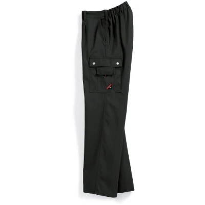 2 side pockets, back pocket, pleats Waistband with elastic band for a comfortable fit 2 thigh pockets including mobile phone and ruler pocket Comfortable fit