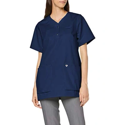 Stylish, practical and slim fit tunic with arm lift system for more freedom of movement; subtle V-neck with press studs Thanks to the soft, lightweight fabric, this tunic for women is ideal as a work uniform and ensures maximum comfort all day long 2 large side pockets on the medical work wear ensure more order: 1 as a bag for storing your pager and 1 loop for your name tag The fabric of this workwear is 50% cotton and 50% polyester and has a fabric weight of 180 g/m2 BP Makes people look more professional and modern in their hard everyday work and ensures that your work is safer, more comfortable and easier