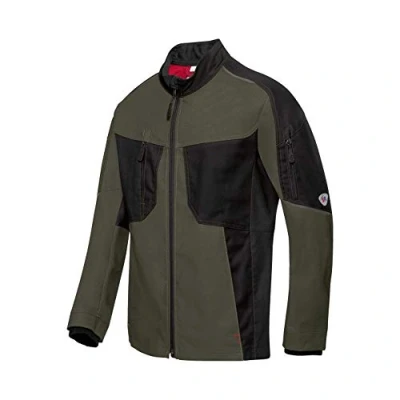 Made from recycled polyester (PET) and sustainably sourced cotton (Fair Trade Cotton Program). Arm lift system for maximum freedom of movement Reflective elements. Slim fit BP 1822-565-7332-38/40L Fabric Blend Work Jacket for Men, Lined Stand-Up Collar and Front Zip, 65% Polyester/35% Cotton, Olive/Black, 38/40L Size
