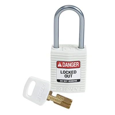 Brady CPT WHT 38AL KD SafeKey Padlock, White, 3.0 in H x 1.25 W 0.75 D