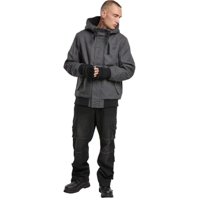 Short jacket with cuffs - teddy fur Hood with drawstring - robust canvas outer material 2 side pockets with press stud closure - inner pocket Front zip with press stud placket Logo embossing on the chest