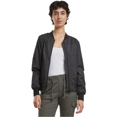 Urban and fashionable cut with lightweight material Dimensionally stable cuffs on the waistband, neck and arm The Jula Girls bomber jacket is the evolution of the classic women's bomber jacket. Only high quality lightweight nylon material is used. A main focus was also placed on the fashionable, urban cut. The knitted cuffs on the collar, waistband and wrist are very dimensionally stable and do not wear out even after long wear. Two side pockets provide enough space for everyday things. Thus, the Brandit Jula Girls bomber jacket scores all over the line and is the right companion in spring and summer.