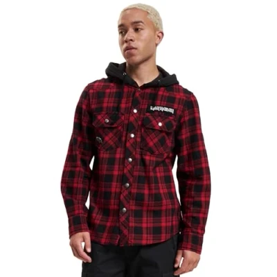 Brandit Men's Maiden Eddi Hooded Check Shirt Transitional Jacket, Dark Red + Black, 6XL