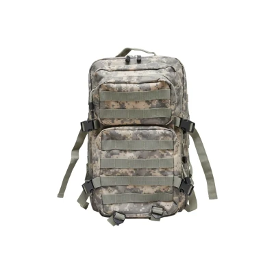 Capacity: 40 litres. Durable waterproof construction. Two separate main compartments. Two front pockets Rear hook and fleece pocket for a hydro pack. All main compartments with a two-way zip. Adjustable padded shoulder straps Adjustable and removable waist belt. Generously padded back. Side compression straps Various MOLLE attachment points Various MOLLE attachment points. Loops and D-rings on shoulder straps. Strong top carry handle Material: 100% polyester, PVC coated. External dimensions: 20.5"x11.8"x12.6" (52x30x32cm). Weight: 1200 g