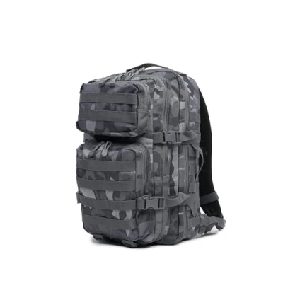 Capacity: 40 litres. Durable waterproof construction. Two separate main compartments. Two front pockets Rear hook and fleece pocket for a hydro pack. All main compartments with a two-way zip. Adjustable padded shoulder straps Adjustable and removable waist belt. Generously padded back. Side compression straps. Various MOLLE attachment points Various MOLLE attachment points. Loops and D-rings on shoulder straps. Strong top carry handle Material: 100% polyester, PVC coated. Outer dimensions: 20.5 x 11.8 x 12.6 inches (52 x 30 x 32 cm). Weight: 1200 g