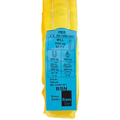 Braun 30041RS Recovery Strap Loop 3000 kg Load 2 m Usable Length Continuous with Polyester Core Yellow
