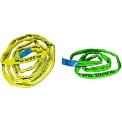 Circular sling 3000 kg direct load capacity in 10.0 metre circumference, 5.0 metre effective length Simple sheathed hose made of 100% polyester With stretchable polyester core Colour yellow with 3 black identification stripes Tube width 57 mm