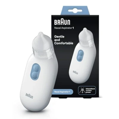 Braun Nasal aspirator 1 Mucus Remover Blocked Nose Relief Electric Suction Power Two Levels Newborn, Baby, and Child Friendly Dishwasher Safe BNA100EU
