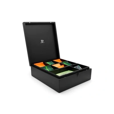 Flexibly divided Holds large and small tea bags Black Made from sustainable bamboo FSC, Manufacturer: Bredemeijer Group BV