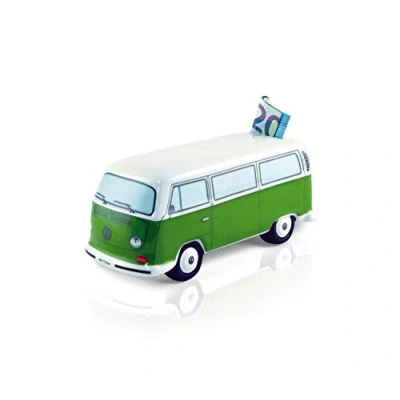 CLASSIC Bus/GREEN: The VW T2 Bus money box is designed in green and white and has been lovingly crafted. The dimensions of this classic piece are 18.5 x 8 x 7.5 cm (7.3 x 3.1 x 3 inches). PRACTICAL: Our piggy banks can be opened and emptied without breaking them, thanks to a rubber stopper, making them a lifelong companion. MULTIFUNCTIONAL: The VW T2 Bus piggy bank not only collects coins but also accommodates banknotes, making it a trendy accessory. TECHNICAL DETAILS: The money saving boxes are made of high-quality ceramic and have a scale of 1:22. The collected money is deposited through the roof of the VW T2 Bus and saved inside. OFFICIALLY LICENSED: The unique T2 Bus design money bank is an officially licensed Volkswagen product. All our items are developed in Germany to meet our high quality standards.