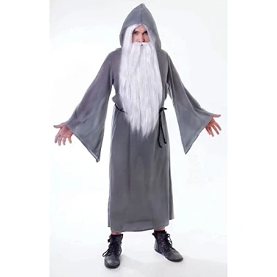 Wizard Cloak. Grey One size fits most Outfit Includes Grey Hooded Cloak, Waist Tie Cord The Perfect Halloween Costume Boots, Wig And Beard Not Included, Manufacturer: Bristol Novelty