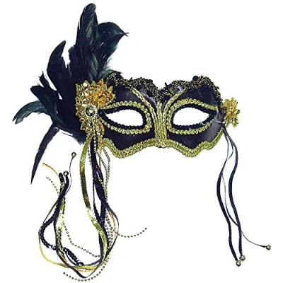 Bristol Novelty EM323 Metallic Eye Mask with Side Feather, Womens, Black, One Size