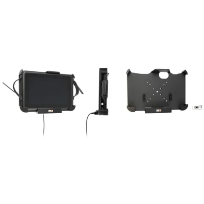 The Brodit device holder 217024 extra robust holder. For devices with integrated scanners. With DC connection (power supply not included). With AMPS, Vesa 75/100 holes. With charging function is suitable for Pepperl+Fuchs Tab-IND 10 tablets. This device holder can be used with all Brodit ProClip vehicle holders. The device holder has an active charging and data cable function. This is installed in the vehicle and establishes a constant connection to the device as soon as it is in the device holder The Brodit device holders are available for Apple devices such as iPhones or iPad mini or Android smartphones and tablets such as Huawei P20 or Samsung Galaxy S10. Brodit device holders are available active (with charging function) and passive (without charging function). With the combination of Brodit vehicle and device holders, you always have a clear view, because it is not placed on the windscreen, but on the dashboard - easy installation, without special tools Box contents: Brodit device holder 217024 for your mobile device. Pre-drilled holes (AMPS hole dimension) suitable for Brodit ProClip for easy installation. 4 mounting screws for connection to Brodit ProClip. All components of the highest quality from Europe. Made in Sweden