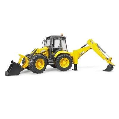 The JCB 5CX eco excavator loader provides plenty of enthusiasm for small builders The cabin windows are made of transparent and shatterproof plastic. The driver's seat is rotatable. The excavator is compatible with all Bworld figures The additional steering column can be stowed in the vehicle floor. The rear window can be opened The rear excavator is fully functional and the front loader shovel can be changed The vehicle has a 4 wheel steering and is equipped with tread tyres. It is available in 1:16 scale